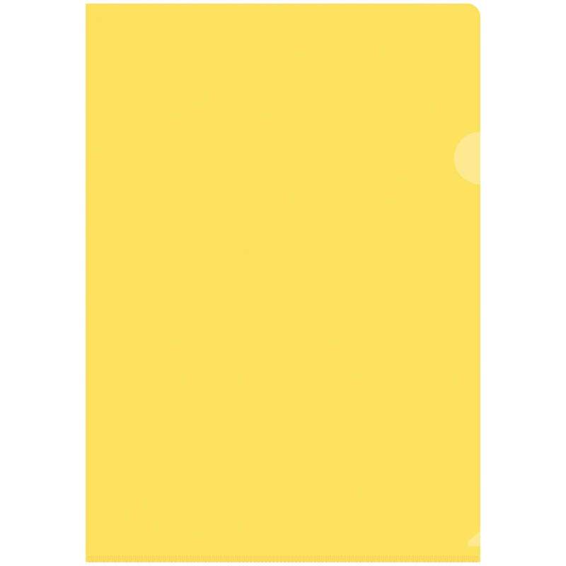 Плотный пластик защищает папку от сминания и других повреждений. Боковой вырез для удобного извлечения документов. Цвета - яркое ассорти, прозрачные.Папка-уголок А4 OfficeSpace, 150мкм, прозрачная желтая