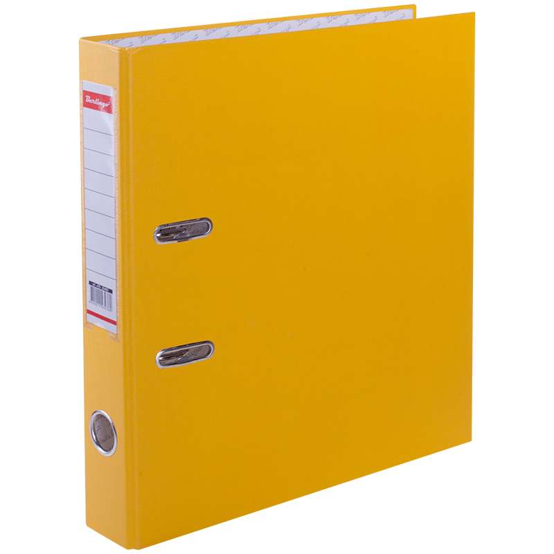 Папки-регистраторы с арочным механизмом из жесткого износостойкого картона. Эффективно экономят офисное пространство, идеальны для создания архива. Выгодно отличаются полем для записей на внутренней стороне обложки, наличием кармана на корешке со сменным информационным ярлыком для маркировкиПапка-регистратор Berlingo, 50мм, бумвинил, с карманом на корешке, желтая