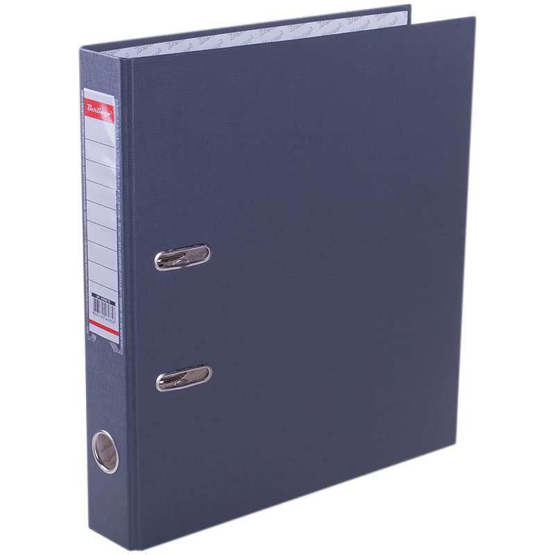 Обложка из жесткого износостойкого картона с односторонним покрытием из бумвинила. Конструкция разработана с учетом всех особенностей эксплуатации. Выгодно отличаются надежным арочным механизмом из качественного металла, наличием кармана на корешке со сменным информационным ярлыком для маркировки, полем для записей на внутренней стороне обложки, отверстием для удобного снятия папки с полки. Цвета в ассортименте.Папка-регистратор Berlingo, 50мм, бумвинил, с карманом на корешке, серая