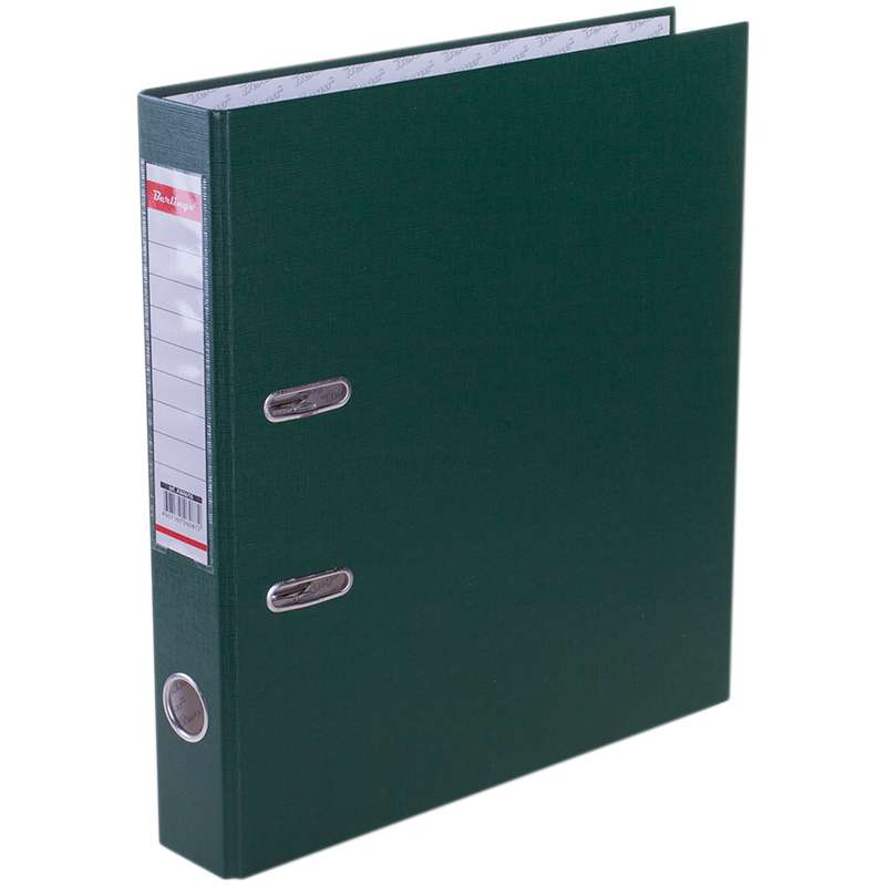 Обложка из жесткого износостойкого картона с односторонним покрытием из бумвинила. Конструкция разработана с учетом всех особенностей эксплуатации. Выгодно отличаются надежным арочным механизмом из качественного металла, наличием кармана на корешке со сменным информационным ярлыком для маркировки, полем для записей на внутренней стороне обложки, отверстием для удобного снятия папки с полки. Цвета в ассортименте.Папка-регистратор Berlingo, 50мм, бумвинил, с карманом на корешке, зеленая