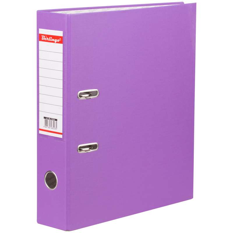 Папка позволяет хранить большое количество документации формата А4. Выгодно отличаются надежным механизмом из качественного металла, наличием кармана на корешке со сменным информационным ярлыком для маркировки, полем для записей на внутренней стороне обложки, отверстием для удобного снятия папки с полки. Незаменима для отделов с большим документооборотом - бухгалтерии, службы персонала.Папка-регистратор Berlingo, 70мм, бумвинил, с карманом на корешке, сиреневая