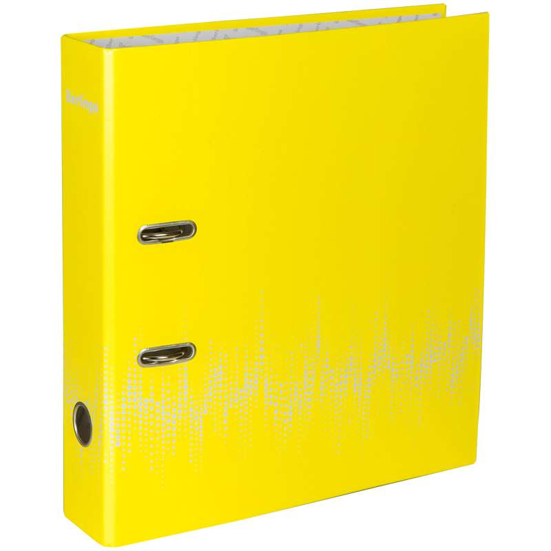 Папки-регистраторы с арочным механизмом из жёсткого износостойкого картона с покрытием из качественной ламинированной бумаги. Цветовая гамма ярких неоновых цветов. Эффективно экономят офисное пространство, идеальны для создания архива. Конструкция разработана с учётом всех особенностей эксплуатации. Выгодно отличаются надёжным арочным механизмом из качественного металла, полем для записей на внутренней стороне обложки, отверстием для удобного снятия папки с полки.Папка-регистратор Berlingo, 70мм, ламинированная, неоновая жёлтая