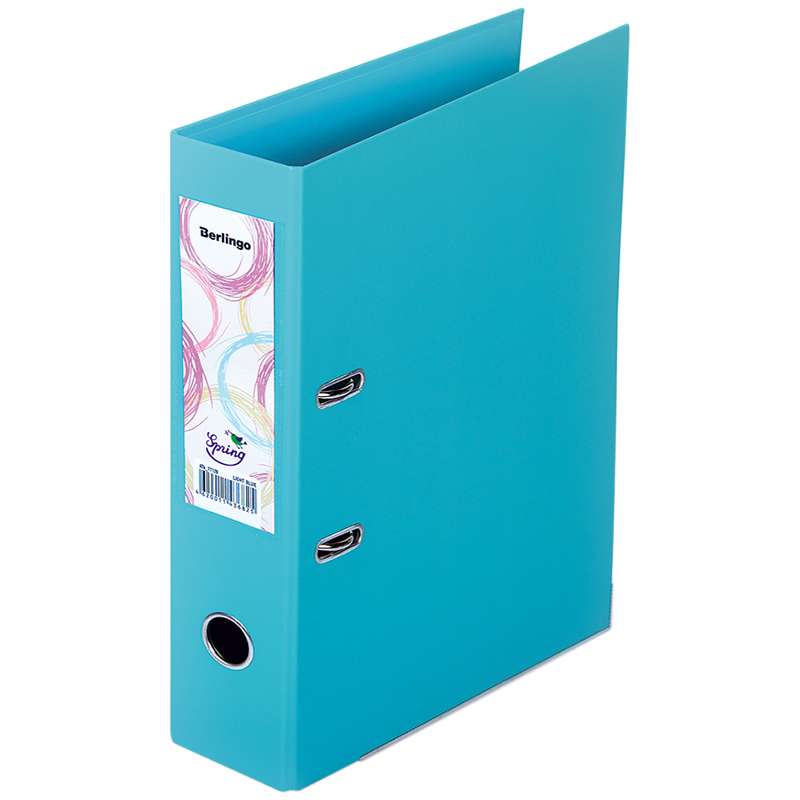 Папки-регистраторы с арочным механизмом из жёсткого износостойкого картона с двухсторонним покрытием из качественного бумвинила. Цветовая гамма нежных пастельных цветов. Эффективно экономят офисное пространство, идеальны для создания архива. Конструкция разработана с учётом всех особенностей эксплуатации. Выгодно отличаются надёжным арочным механизмом из качественного металла, наличием кармана на корешке со сменным информационным ярлыком для маркировки, полем для записей на внутренней стороне обложки, отверстием для удобного снятия папки с полки. Для повышения износостойкости нижние грани укреплены металлическим кантом.Папка-регистратор Berlingo "Spring", 70мм, бумвинил, двухстор., с карманом, ниж.мет. кант, бирюзовая