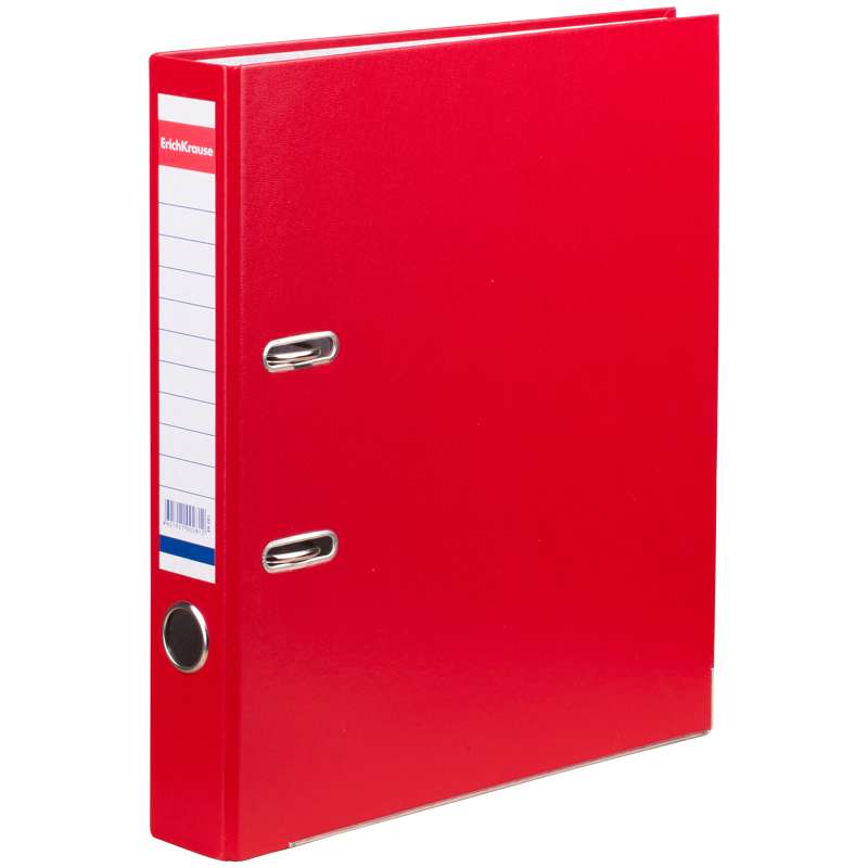 Формат А4. Изготовлены из картона, покрытого пластиковым материалом с тиснением «под кожу» для увеличения срока использования. Этикетка для маркировки наклеена на корешок, широкая цветовая гамма.Папка-регистратор Erich Krause "Стандарт", 50мм, бумвинил, нижний метал. кант, красная
