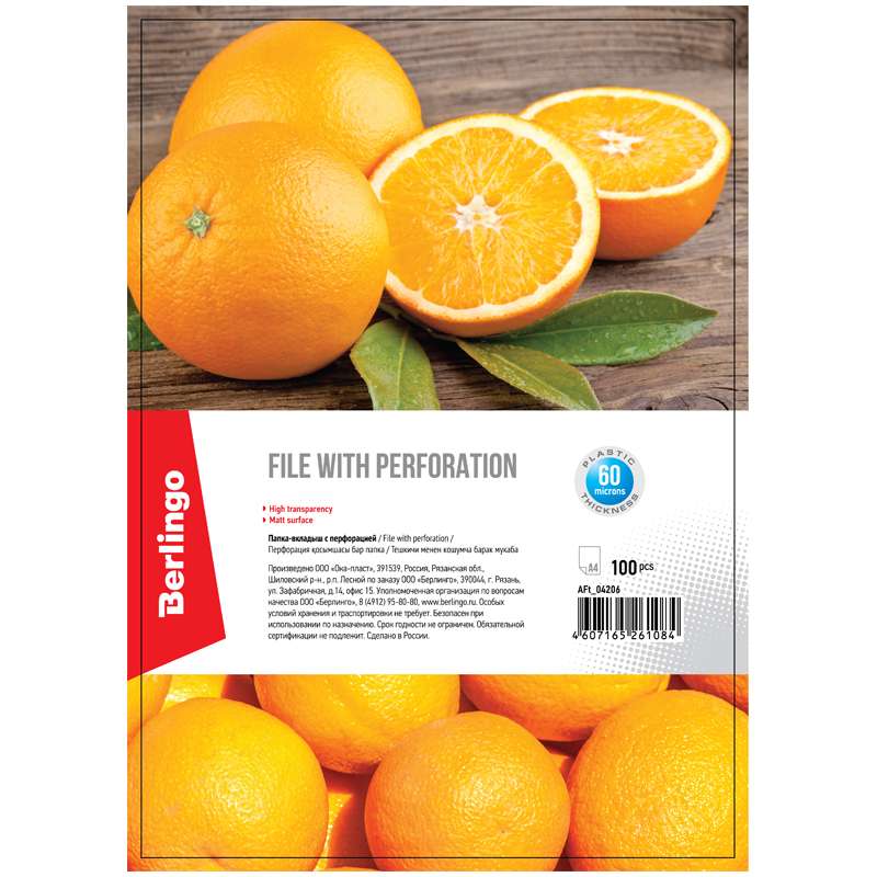 Антибликовая текстура «апельсиновая корка». Универсальная перфорация, подходит для любых папок. Яркий информационный лист-вкладыш А4 в каждой групповой упаковке и логотип на боковой ленте. Вместимость - 60 листов бумаги 80 г/м².130058 Папка-вкладыш с перфорацией "Апельсиновая корка", А4, 60мкм, матовая AFt_04206 [РЦ]