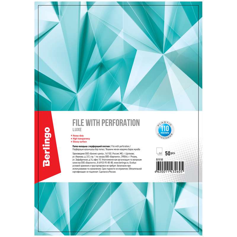 Главная / Товары / КАНЦТОВАРЫ / УПАКОВКА / ХОЗ ТОВАРЫ / РАСХОДНЫЕ МАТЕРИАЛЫ / Канцелярские товары - Офисные / Папки, системы архивации / Папки-вкладыши / Папка-вкладыш с перфорацией Berlingo "Luxe", А4, 110мкм, глянцевая