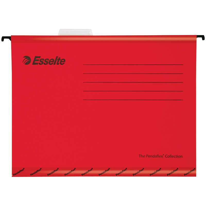 Яркие подвесные папки для документов формата А4. Позволяют хранить документацию, корреспонденцию, каталоги. Защищают документы от пыли и заломов.Подвесная папка Esselte "Pendaflex Plus Foolscap", 240*412мм, картон, 210г/м2, красная