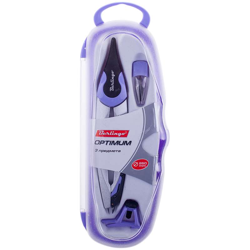 Главная / Товары / КАНЦТОВАРЫ / УПАКОВКА / ХОЗ ТОВАРЫ / РАСХОДНЫЕ МАТЕРИАЛЫ / Канцелярские товары - Офисные / Письменные и чертежные принадлежности / Чертежные принадлежности / Циркули, готовальни / Готовальня Berlingo "Optimum", 3 предмета, циркуль 135мм, пластиковый футляр