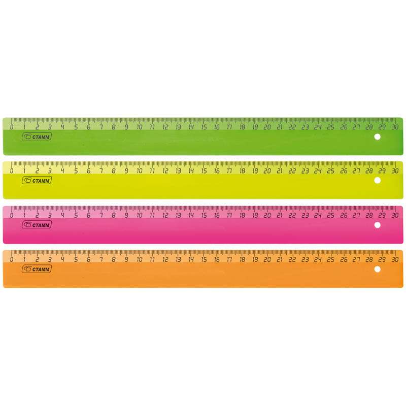 Яркие флуоресцентные цвета, безупречное качество пластика, безопасные закругленные углы, легкий корпус. Материал полистирол. Ровная четкая миллиметровая шкала. Отличается равномерным распределением красителя в корпусе.028388 Линейка 30см Стамм, флуоресцентная, ассорти ЛН31 [РЦ]