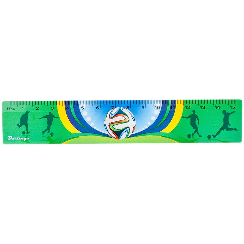 Линейка пластиковая,15 см , ширина 3 см. Безопасные закругленные края. Каждая линейка упакована в пластиковый пакет с европодвесом.Линейка 15см Berlingo "Футбол", пластиковая, европодвес