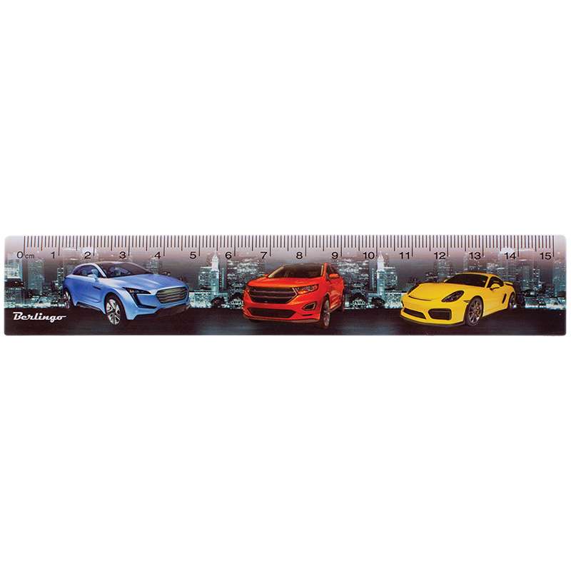 Линейка пластиковая,15 см , ширина 3 см. Безопасные закругленные края. Каждая линейка упакована в пластиковый пакет с европодвесом.Линейка 15см Berlingo "Машинки", пластиковая