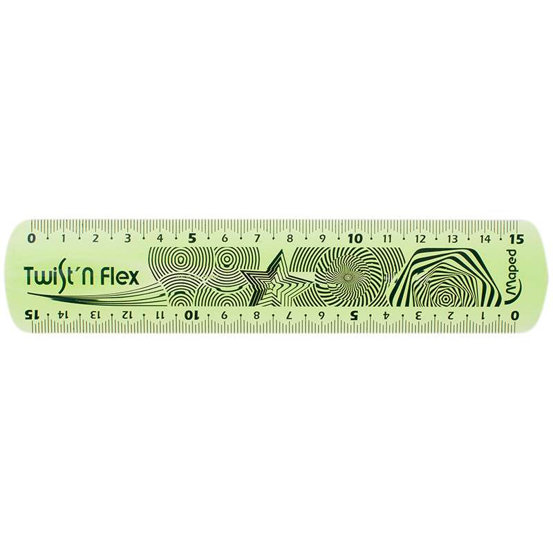Неломающаяся, гибкая линейка TWIST'N FLEX, 15 см. Высококачественная двухсторонняя градуировка с использованием УФ-чернил. Цвет ассорти: синий, зеленый, сиреневый.Линейка 15см Maped "Twist'n flex", гибкая, цветная, европодвес