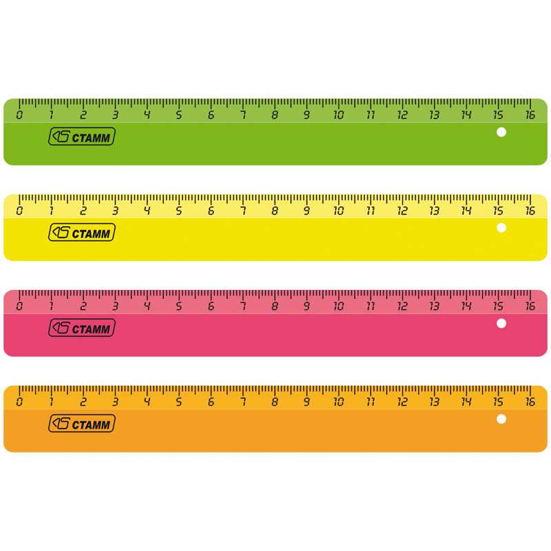 Яркие флуоресцентные цвета, безупречное качество пластика, безопасные закругленные углы, легкий корпус. Материал полистирол. Ровная четкая миллиметровая шкала. Отличается равномерным распределением красителя в корпусе.Линейка 16см Стамм, флуоресцентная, ассорти