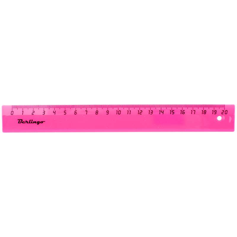 Линейка пластиковая,20 см , безопасные закругленные края, каждая линейка имеет индивидуальный ШК .Линейка 20см Berlingo, флуоресцентная, ассорти