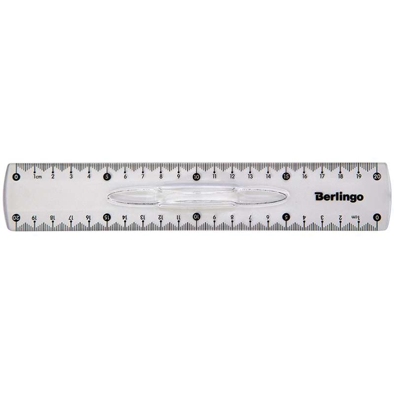Линейка пластиковая, 20 см, безопасные закругленные края, эргономичный держатель, высококачественная градуировка с использованием УФ-чернил. Индивидуальная упаковка в пакет с европодвесом.Линейка 20см Berlingo "Spike", с держателем, прозрачная, европодвес