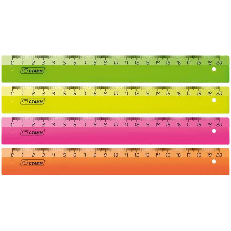 Яркие флуоресцентные цвета, безупречное качество пластика, безопасные закругленные углы, легкий корпус. Материал полистирол. Ровная четкая миллиметровая шкала. Отличается равномерным распределением красителя в корпусе.Линейка 20см Стамм, флуоресцентная, ассорти