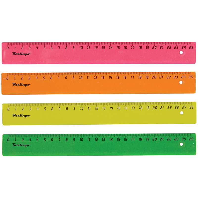 Главная / Товары / КАНЦТОВАРЫ / УПАКОВКА / ХОЗ ТОВАРЫ / РАСХОДНЫЕ МАТЕРИАЛЫ / Канцелярские товары - Офисные / Письменные и чертежные принадлежности / Чертежные принадлежности / Линейки, треугольники, транспотриры / Линейка 25см Berlingo, флуоресцентная, ассорти