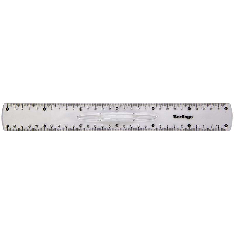 Линейка пластиковая, 30 см, безопасные закругленные края, эргономичный держатель, высококачественная градуировка с использованием УФ-чернил. Индивидуальная упаковка в пакет с европодвесом.Линейка 30см Berlingo "Spike", с держателем, прозрачная, европодвес