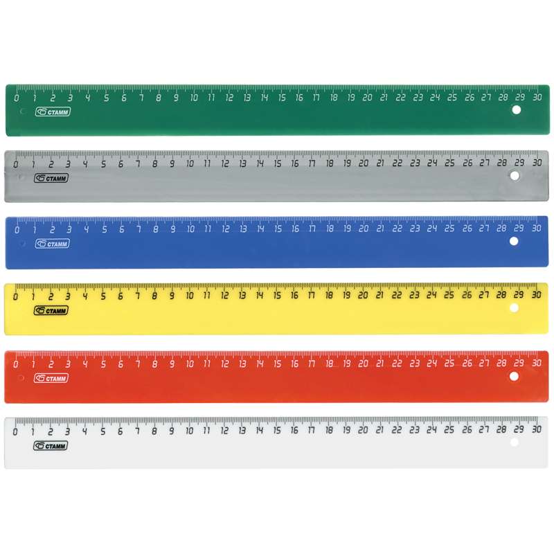 Широкий ассортимент ярких цветов, безупречное качество пластика, безопасные закругленные углы, легкий корпус. Ровная четкая двусторонняя миллиметровая шкала. Отличается равномерным распределением красителя в корпусе. Материал - полистирол.Линейка 30см Стамм, классические цвета, ассорти