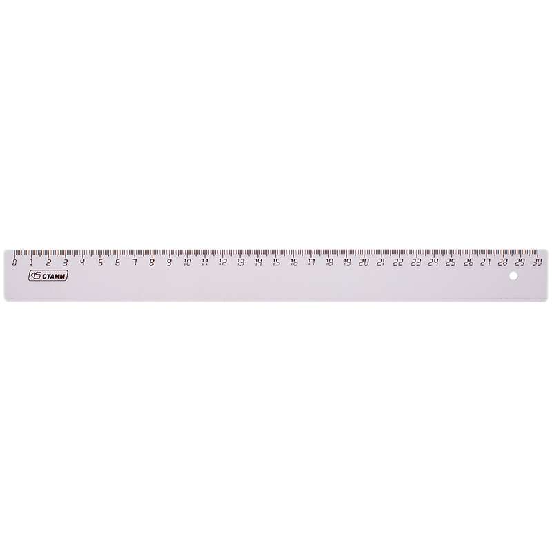 Широкий ассортимент ярких цветов, безупречное качество пластика, безопасные закругленные углы, легкий корпус. Ровная четкая двусторонняя миллиметровая шкала. Отличается равномерным распределением красителя в корпусе. Материал - полистирол.Линейка 30см Стамм, прозрачная бесцветная