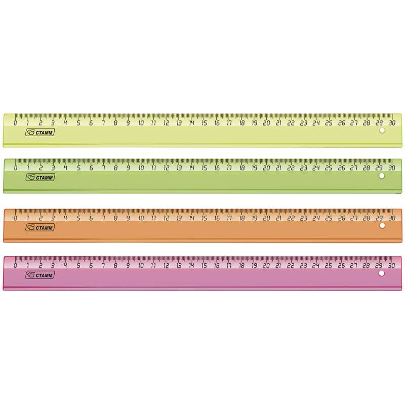 Яркие флуоресцентные цвета, безупречное качество пластика, безопасные закругленные углы, легкий корпус. Материал-полистирол. Ровная четкая миллиметровая шкала. Отличается равномерным распределением красителя в корпусе.Линейка 30см Стамм, прозрачная флуоресцентная, ассорти