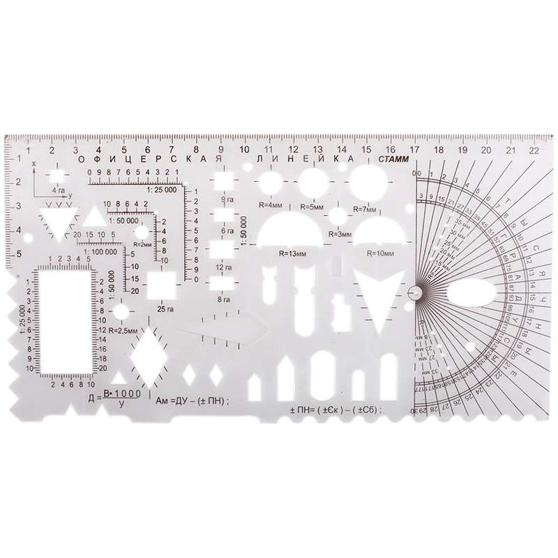 39 тактических элемента. Прочная и гибкая линейка, содержащая всё необходимое для построения и работы с картами материал гибкий пластик линейка 22 см с печатной шкалой.Линейка офицерская Стамм №2, курсантская, печатная шкала