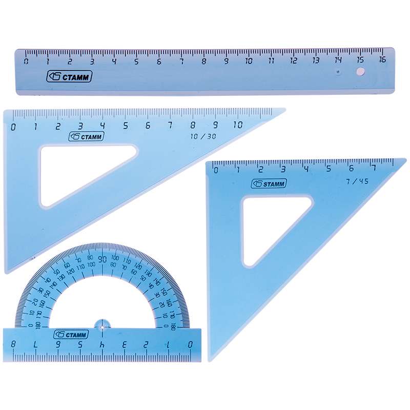 Главная / Товары / КАНЦТОВАРЫ / УПАКОВКА / ХОЗ ТОВАРЫ / РАСХОДНЫЕ МАТЕРИАЛЫ / Канцелярские товары - Офисные / Письменные и чертежные принадлежности / Чертежные принадлежности / Линейки, треугольники, транспотриры / Набор чертежный малый Стамм, (треуг. 2шт., линейка 16см, транспортир), прозрачный тонированный