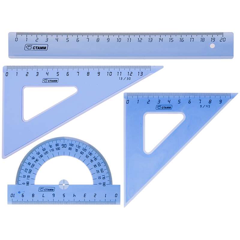 Главная / Товары / КАНЦТОВАРЫ / УПАКОВКА / ХОЗ ТОВАРЫ / РАСХОДНЫЕ МАТЕРИАЛЫ / Канцелярские товары - Офисные / Письменные и чертежные принадлежности / Чертежные принадлежности / Линейки, треугольники, транспотриры / Набор чертежный средний Стамм, (треуг. 2шт., линейка 20см, транспортир), прозрачный тонированный
