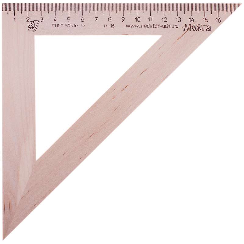 Прямоугольный треугольник с углами при основании 45 градусов. Используется для занятий черчением, построения графиков, проектирования. Длина стороны с делениями 180 мм.Треугольник 45°, 18см Можга, дерево