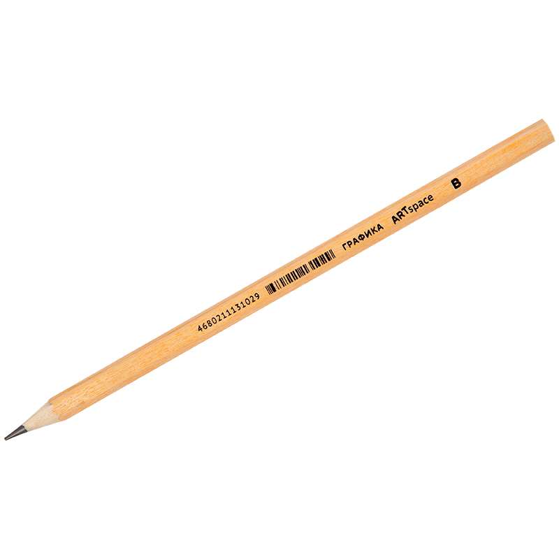 Чернографитный заточенный карандаш из натурального дерева. Отлично подходит для выполнения чертежных, технических, графических и художественных работ. Твердость B (М), шестигранная форма корпуса цвета натурального дерева. Упаковка в картонную коробку с европодвесом, есть штрих-код на корпусе.Карандаш ч/г ArtSpace "Графика" B, заточен.