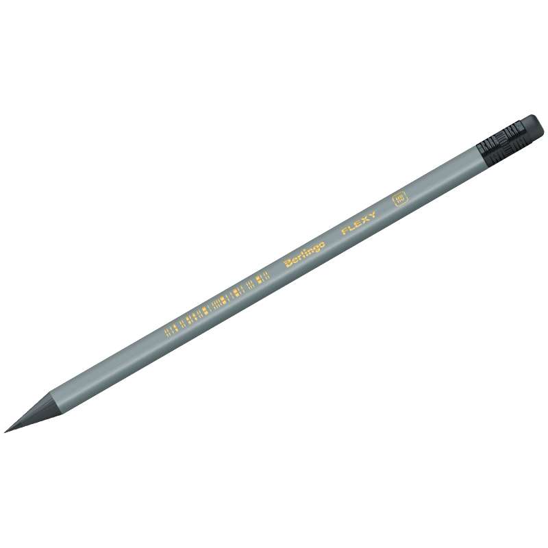 Карандаш чернографитный, пластиковый, с ластиком. Стильный серебристый корпус в сочетании с черным цветом пластика и золотым лого. 2мм грифель. Легко затачивается, максимально устойчивый к повреждениям.Карандаш ч/г Berlingo "Flexy" HB, с ластиком, заточен., пластиковый