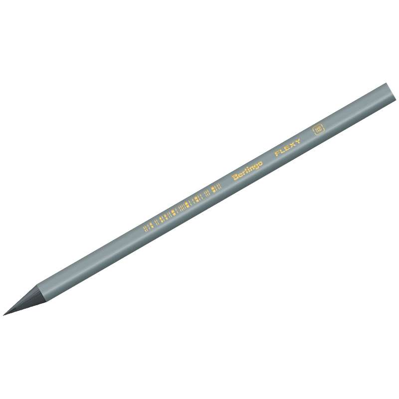 Карандаш чернографитный, пластиковый. Стильный серебристый корпус в сочетании с черным цветом пластика и золотым лого. 2мм грифель. Легко затачивается, максимально устойчивый к повреждениям.Карандаш ч/г Berlingo "Flexy" HB, заточен., пластиковый