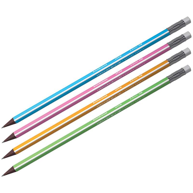 Яркие цвета корпуса, стильный черный цвет древесины, удобная треугольная форма – для жизнерадостных, энергичных людей. Оснащен ластиком. Прочный неломающийся грифель. Диаметр грифеля 2.2 мм, твердость HB.Карандаш ч/г Erich Krause "Vivo" HB, с ластиком, трехгран., заточен.