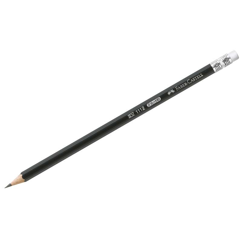 Шестигранные деревянные карандаши с ластиком. Твердость - HB, цвет корпуса - черный. Подходят для чертежных и оформительских работ.Карандаш ч/г Faber-Castell "1112" HB, с ластиком, заточен.