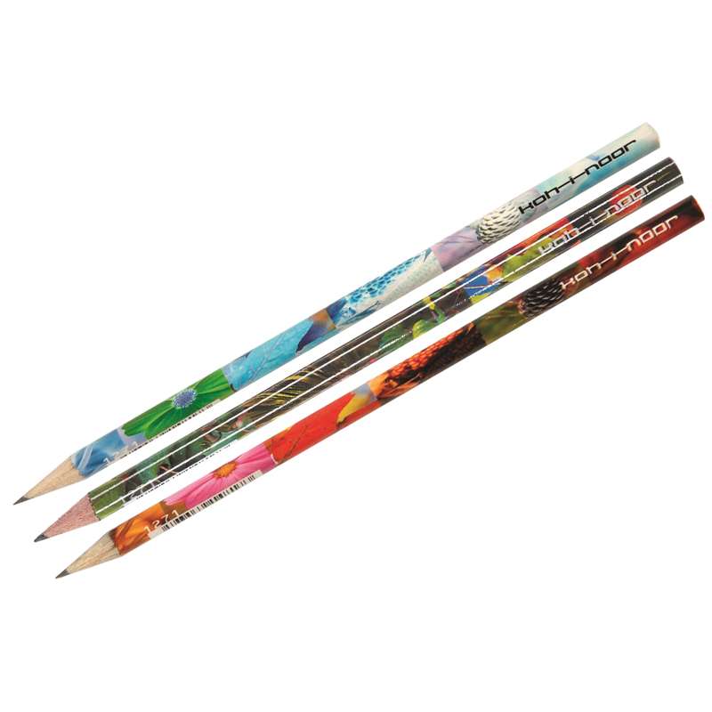 Чернографитный карандаш без ластика я ярком цветном корпусе. В ассортименте три разных дизайнаКарандаш ч/г Koh-I-Noor "Photo" HB, заточен.