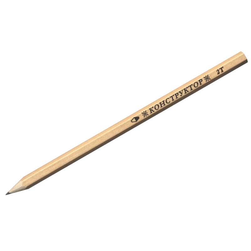 Чернографитный карандаш из натурального дерева. Предназначен для чертежных и художественных работ. Шестигранный профиль, твердость 2Т, натуральный цвет корпуса.Карандаш ч/г Красин "Конструктор" 2Т (2H), заточен.