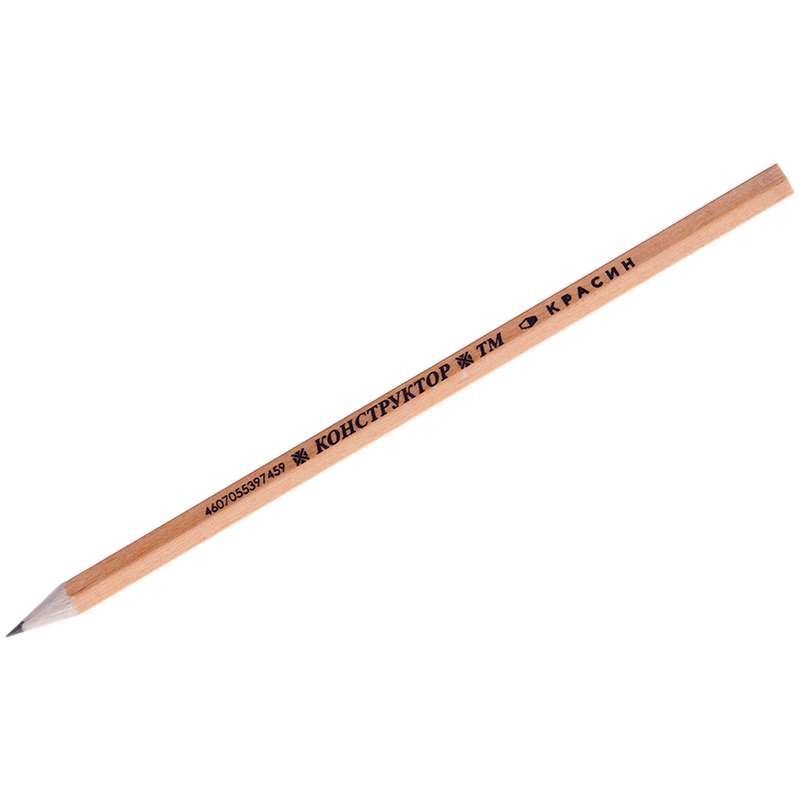 Чернографитный карандаш из натурального дерева. Предназначен для чертежных и художественных работ. Шестигранный профиль, твердость ТМ, натуральный цвет корпуса.Карандаш ч/г Красин "Конструктор" ТМ (HB), заточен.