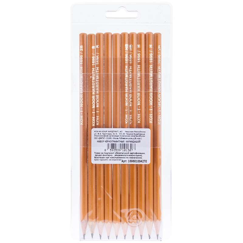 Главная / Товары / КАНЦТОВАРЫ / УПАКОВКА / ХОЗ ТОВАРЫ / РАСХОДНЫЕ МАТЕРИАЛЫ / Канцелярские товары - Офисные / Письменные и чертежные принадлежности / Карандаши / Карандаши чернографитные / Набор карандашей ч/г Koh-I-Noor "1696", 10шт., 2H-2B, заточен., ПВХ уп., европодвес