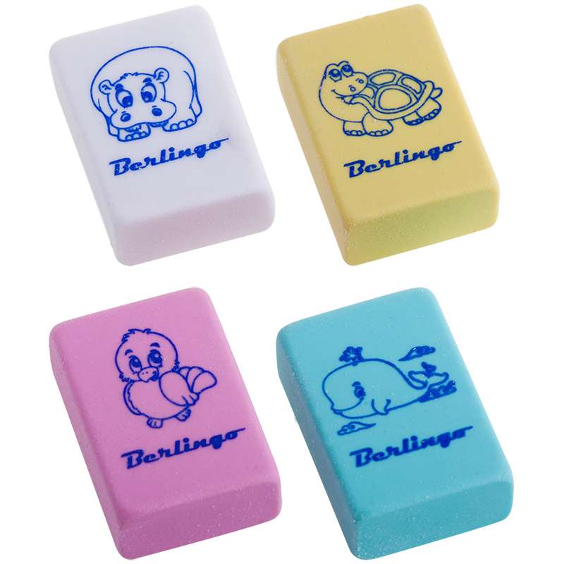 Ластик выполнен из высококачественной термопластичной резины. Каждый ластик имеет штрихкод. Упаковка в дисплей. 4 цвета ассорти.Ластик Berlingo "Animals", прямоугольный, термопластичная резина, 28*18*10мм