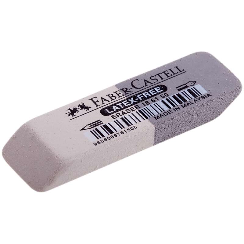 Двусторонний ластик из высококачественного полимерного материала. Для удаления чернографитного, цветного карандаша и чернил.Ластик Faber-Castell "Latex-Free 7061", скошенный, комбинированный, натуральный каучук, 50*16*7мм