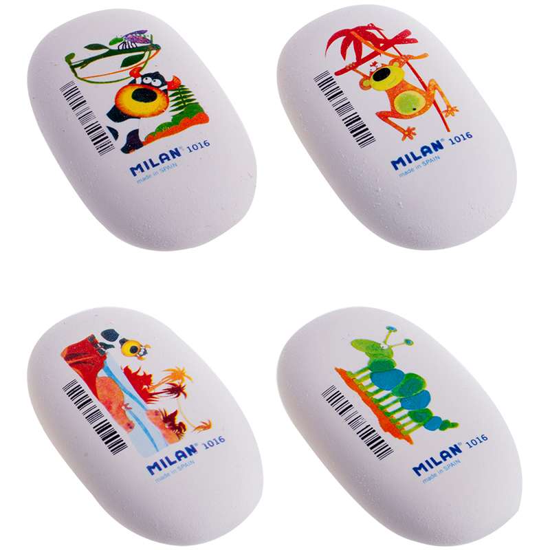 Мягкий синтетический каучуковый ластик. Подходит для удаления штрихов от большинства графитовых карандашей на всех видах поверхностейЛастик Milan "1016", овальный, синтетический каучук, 69*38*16мм