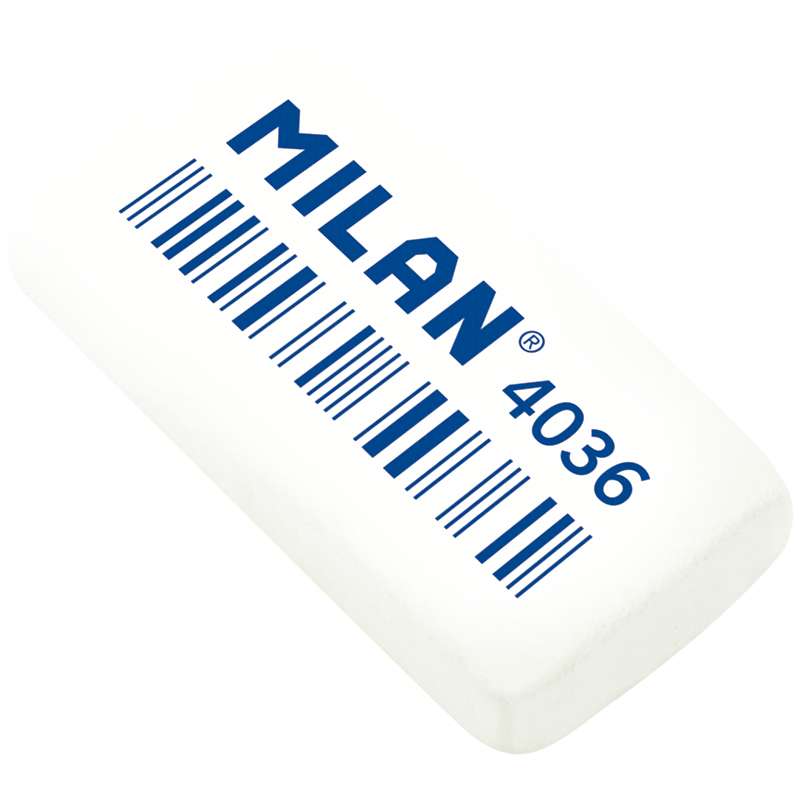 Ластик из синтетического каучука, упакован в коробку. Предназначен для чернографитных карандашейЛастик Milan "4036", прямоугольный, синтетический каучук, 39*20*8мм