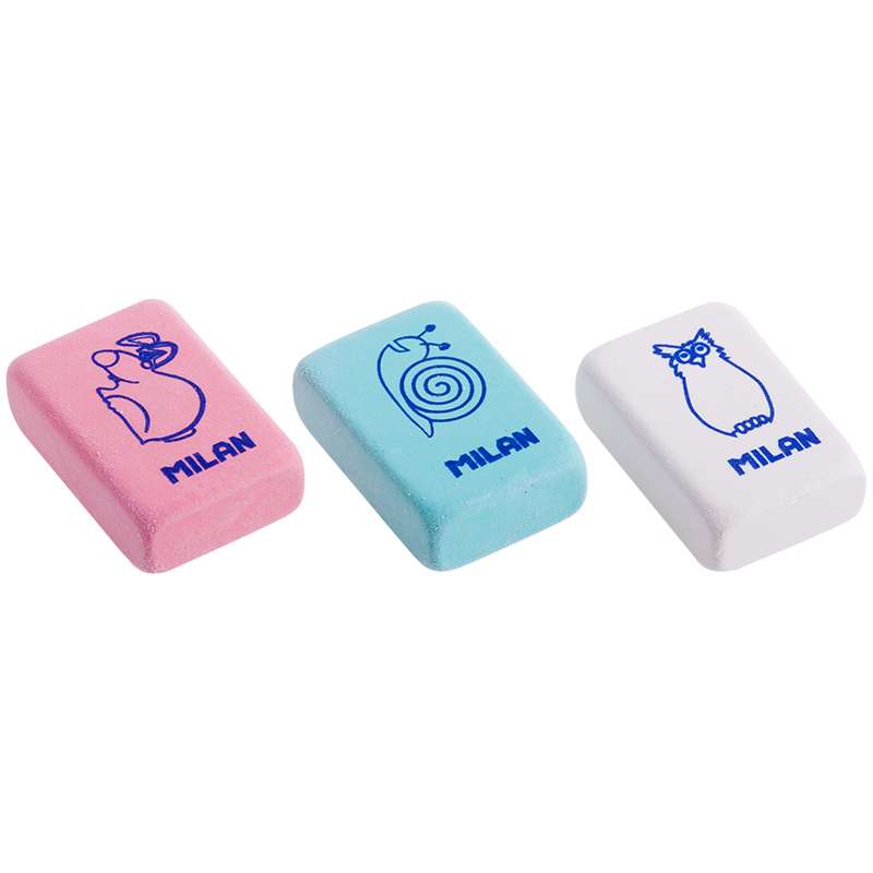 Ластик из натурального каучука с добавлением абразивных веществ. Подходит для работы с твердыми грифелями. Мягкие формы, спокойные пастельные цвета, забавные персонажи. Страна-производитель: ИспанияЛастик Milan "4060", прямоугольный, синтетический каучук, 28*19*10мм
