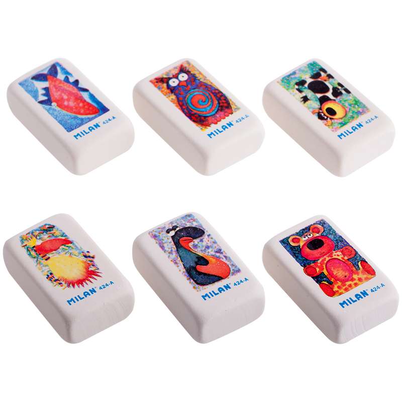 Фирменный дизайн от MILAN. Классическая форма с изображением веселых анимационных персонажей серии "ЗВЕРИ,РЫБЫ,ПТИЦЫ".Мягкая структура натурального каучука. Высокое качество. Великолепное абсорбирующее свойства, бережное отношение к поверхности бумаги.Ластик Milan "424-А", прямоугольный, синтетический каучук, 39*23*13мм