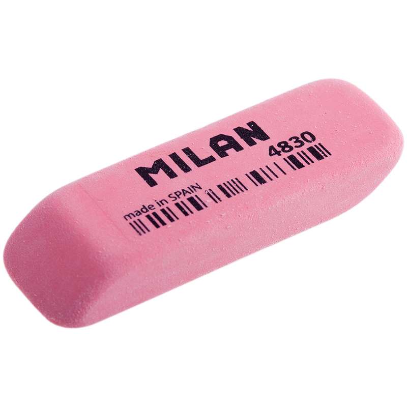 Мягкий резиновый ластик. Подходит для удаления штрихов от большинства графитовых карандашей на всех видах поверхностейЛастик Milan "4830", скошенный, синтетический каучук, 59*19*10мм