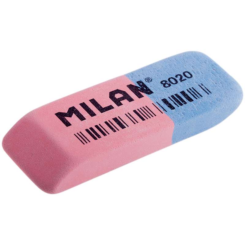 Классические натуральные ластики с добавлением двух видов абразивов. Позволяют удалять с бумаги чернила и стирать цветные карандаши.Ластик Milan "8020", скошенный, комбинированный, натуральный каучук, 63*24*9мм