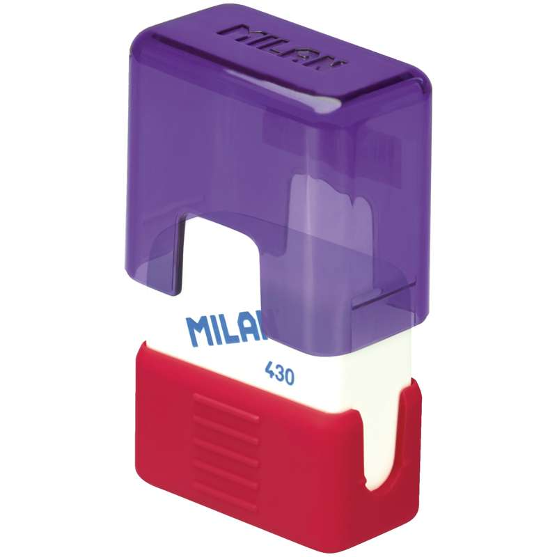 Ластик MILAN 430 с защитным чехлом, доступны в 4 цветовых комбинациях. Мягкий синтетический каучуковый ластик. Подходит для удаления штрихов от большинства графитовых карандашей на всех видах поверхностейЛастик Milan "School 430", прямоугольный, синтетический каучук, пластик. держатель, 34*32*19мм