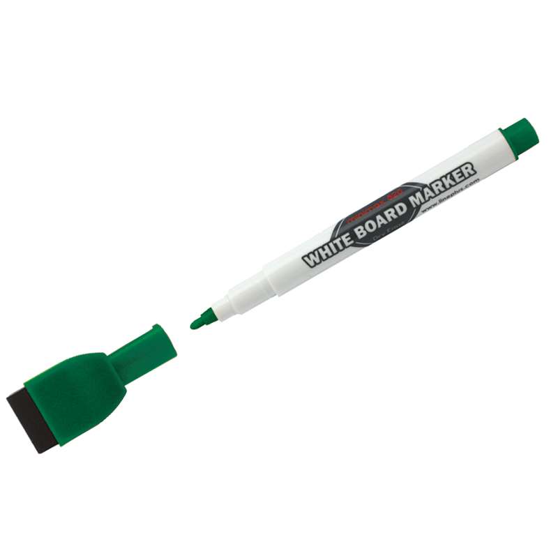 Маркер для досок с магнитом и губкой. Магнит, закрепленный на колпачке, позволяет разместить маркер на вертикальной поверхности доски.Маркер для магнитных досок Line Plus "MiniMax-820" зеленый, пулевидный, 2мм, с магнитом и губкой