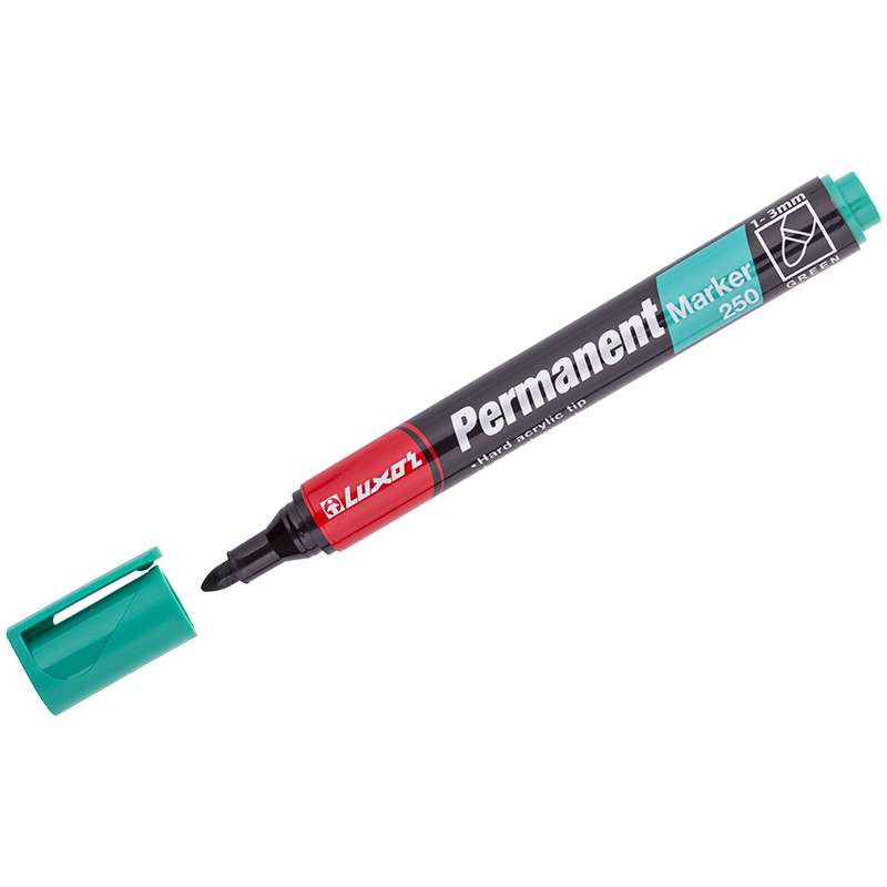 Главная / Товары / КАНЦТОВАРЫ / УПАКОВКА / ХОЗ ТОВАРЫ / РАСХОДНЫЕ МАТЕРИАЛЫ / Канцелярские товары - Офисные / Письменные и чертежные принадлежности / Маркеры и текстовыделители / Маркеры перманентные / Маркер перманентный Luxor "250" зеленый, пулевидный, 1-3мм