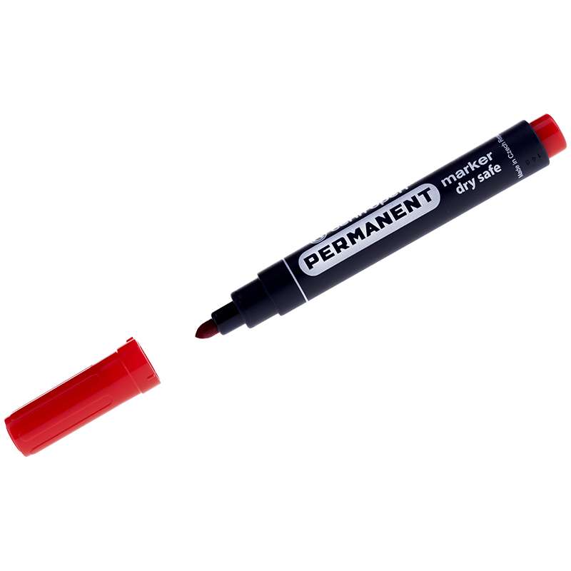 Устойчивый к высыханию перманентный маркер. Может находиться до 14 дней без колпачка. Круглый пишущий наконечник, ширина линии письма 2,5 мм, пишет на бумаге, картоне, дереве, металле, пластмассе, стекле, керамике и камне. Водостойкие и быстросохнущие чернила, обладают нейтральным запахомМаркер перманентный "8510" красный, пулевидный, 2,5мм, устойчив к высыханию